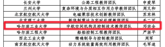 宇航空间机构及控制技术教师团队在邓宗全院士和刘宏院士的带领下,形成了以中青年学术骨干教师为主体,梯队合理、层次分明、合作密切、氛围融洽的“大师+团队”模式。团队面向国家重大需求,在载人航天与探月工程、高分专项、深空探测与在轨服务等领域打造出一批国之重器。党的十八大以来,获得国家和省级教学成果奖4项、科研奖励17项、团队表彰4项、个人表彰16人次,并入选国家自然科学基金委创新研究群体。