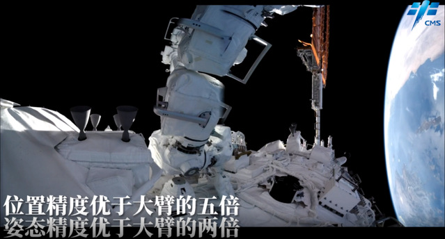 作为空间站“明星”部件之一,相比于核心舱配备的大机械臂,小机械臂更加精巧,采用了7自由度对称构型,两端各有一个末端作用器;其臂长近6米,有效操作空间约5米,最大负载3吨;可单独使用,也可与大机械臂形成组合机械臂;支持航天员出舱活动、舱外状态检查、舱外货物转移及安装、舱外维护维修、载荷照料、光学设施维护等6项应用任务。