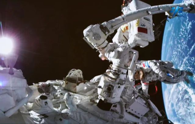 航天员出舱活动期间,先后完成了舱外助力手柄安装、载荷回路扩展泵组安装、舱外救援验证等任务,全过程顺利圆满,进一步检验了航天员与小机械臂协同工作的能力、验证了问天实验舱气闸舱和出舱活动相关支持设备的功能性能。
